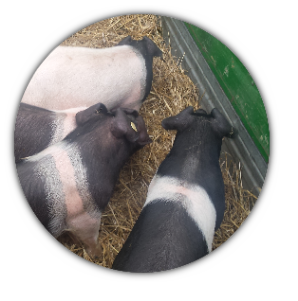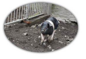 Unsere Schweine dürfen sich noch im Schweinegarten im Schlamm wühlen und den ganzen Tag die Sonne genießen.